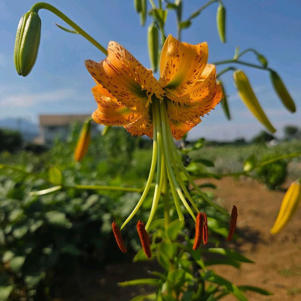 キカノコユリは一見、カノコユリに似ているのでカノコユリの黄花かと思うかもしれませんが、日本原産のカノコユリLilium speciosumとは別種で、中国原産のLilium henryiとなります。カノコユリとは草姿が異なり、香りもありません。
