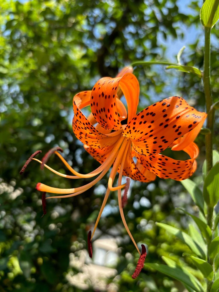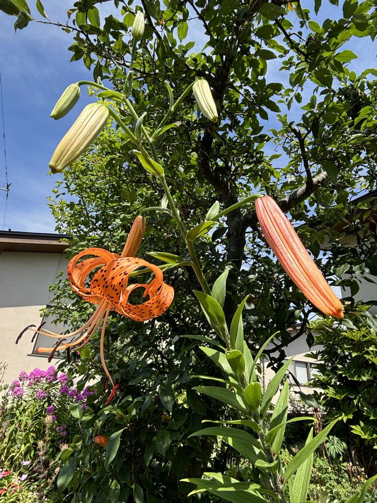 このオニユリ地植えしたわけじゃ無く、植え替えした時に球根が残ってたらしく、知らずにここに捨てたのが咲いたのよ😆✌️