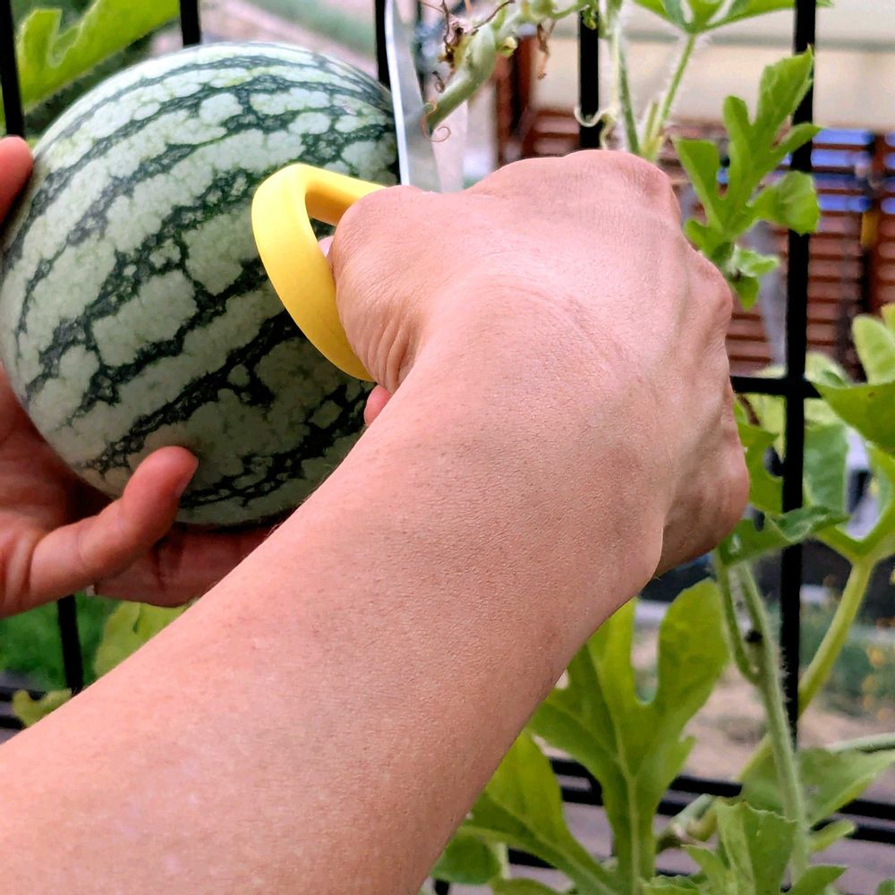 鉢植えで育てていてフェンスを使って空中栽培されてました🍉