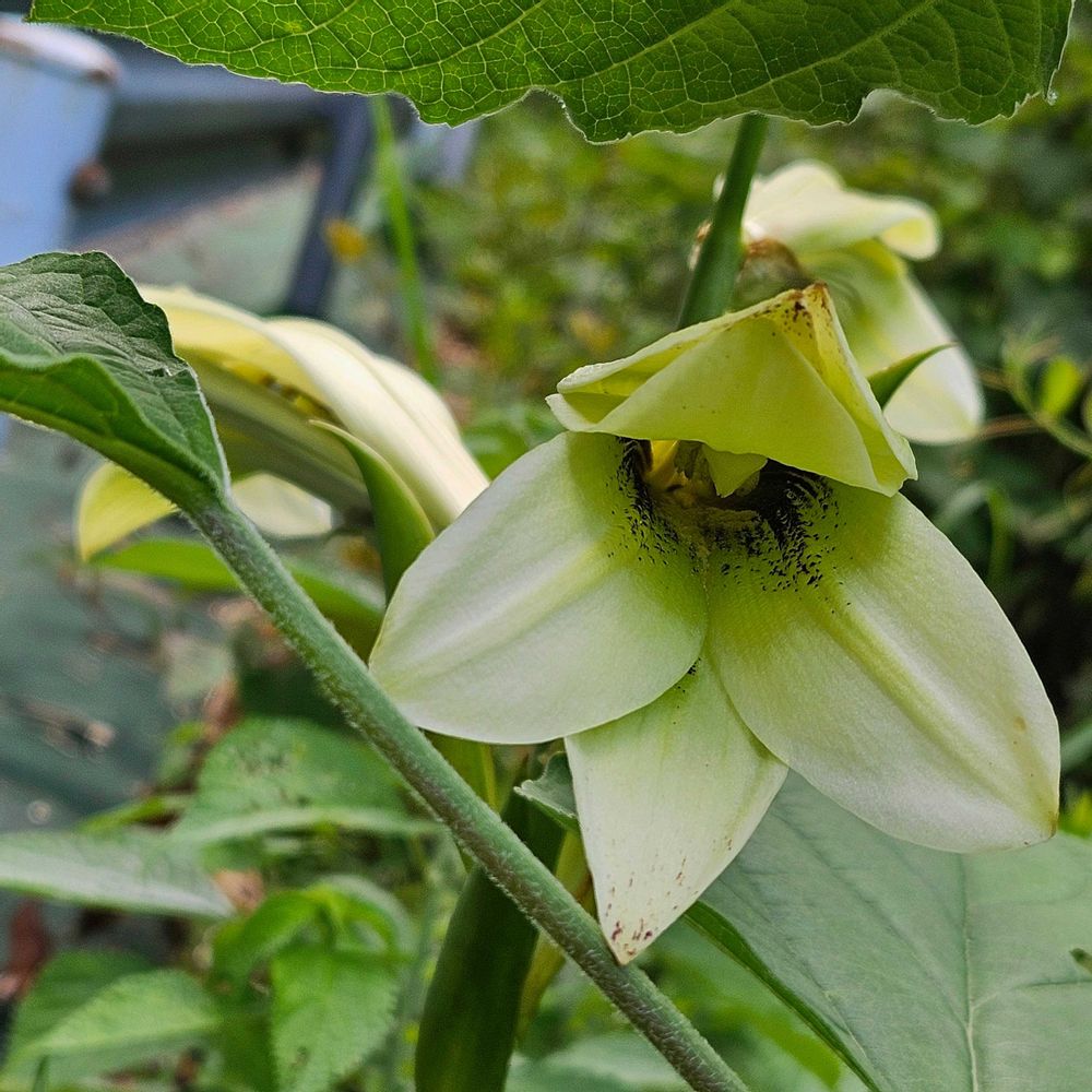 ウバユリ、名前は何度も耳にしたことあるけど、まだ見たことのないお花。都市緑化植物園で見たのは何だった⁉️と遡って、「バイモユリ」でした。全然違ってた😅