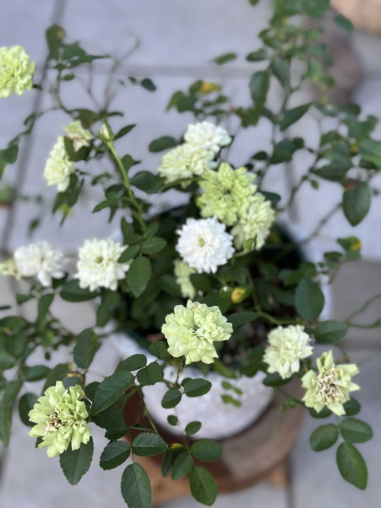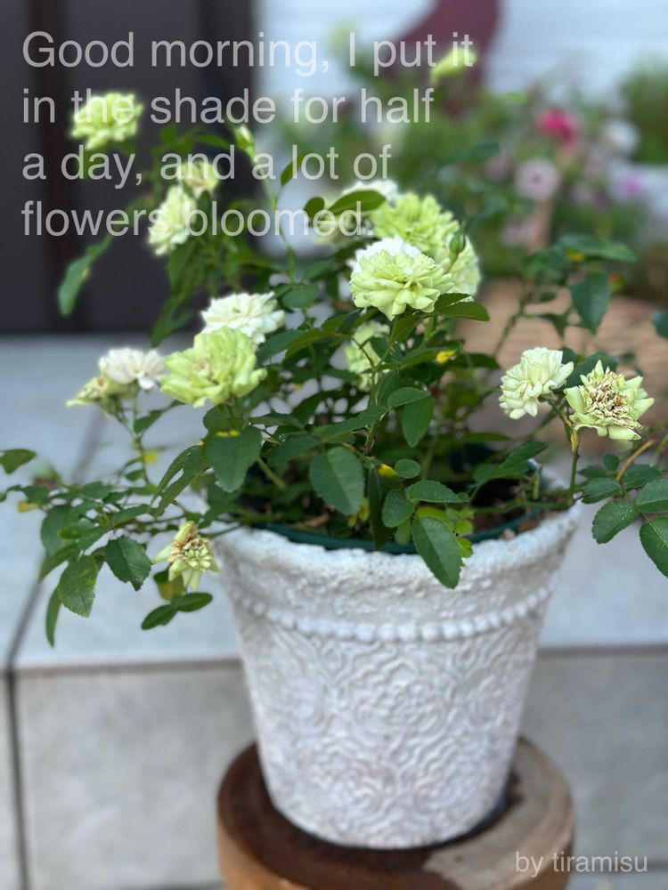 1ヶ月前は花が終わり1〜2輪になりましたが、半日日陰になる場所に移動したら、1ヶ月で、こんなに花を付けるようになりました🌸🌿