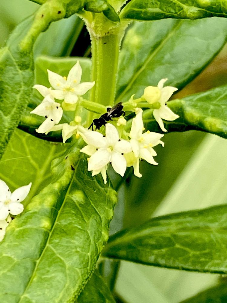 花は葉腋から集散花序を付け、花色は白色〜緑白色!