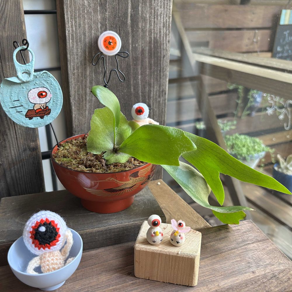 ①お椀に入ったニョロン?ビロ〜ンと伸びたビカクシダ