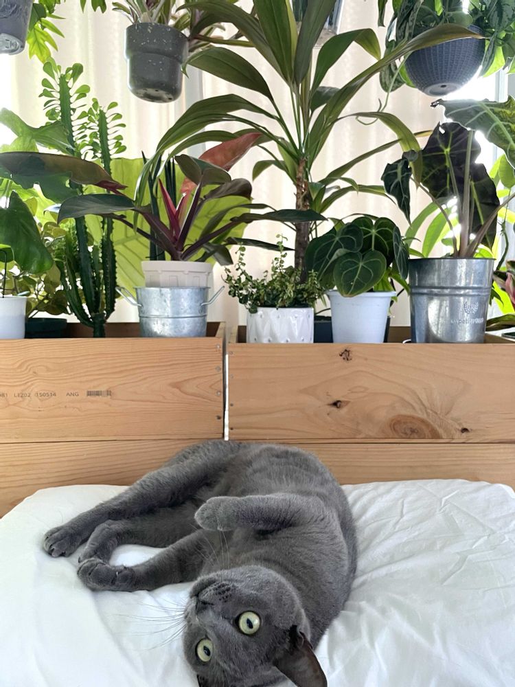 🌿と🪴をメインに🐈⬛🎞️📚🍺 チラチラ登場するグレイの猫は洋猫風ですがワイルドな環境から保護された元野良猫🐈⬛ 葉っぱ齧っちゃうこの子のお陰でハンギングは得意