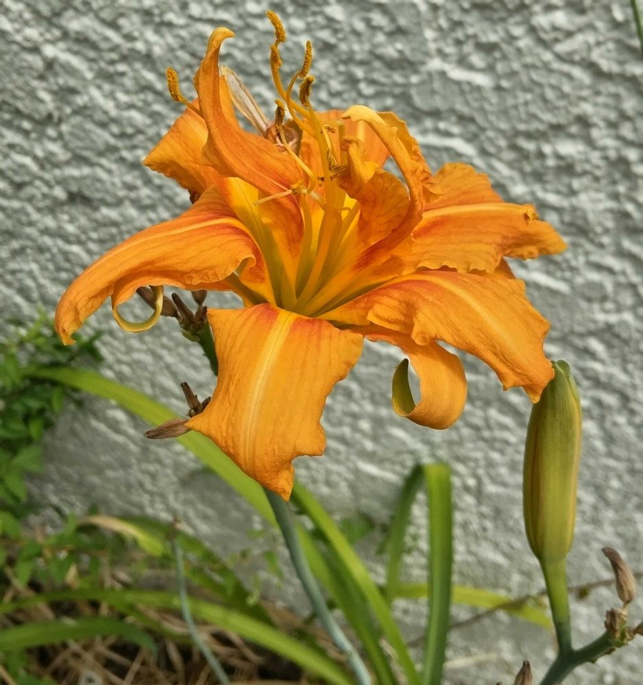 手入れのされていない雑然とした花壇の中で、鮮やかなオレンジ色の花を咲かせていたヤブカンゾウ。