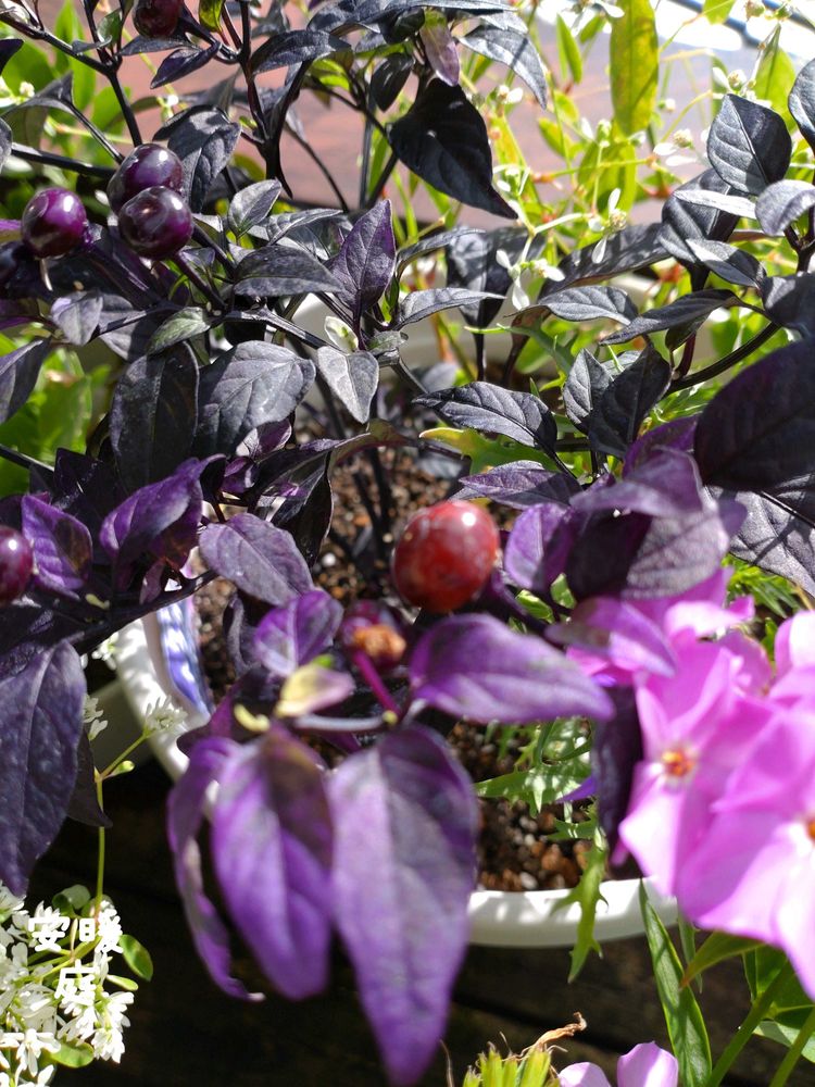2 実感詣での帰りにお迎えした観賞用トウガラシ💜