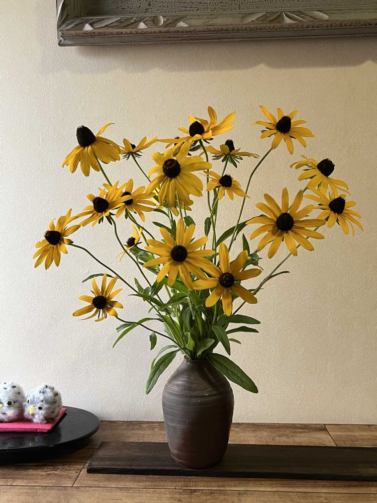 ルドベキアさん、雰囲気良く生けていらっしゃる🌿🌼🌿…とっても素敵です🥰
