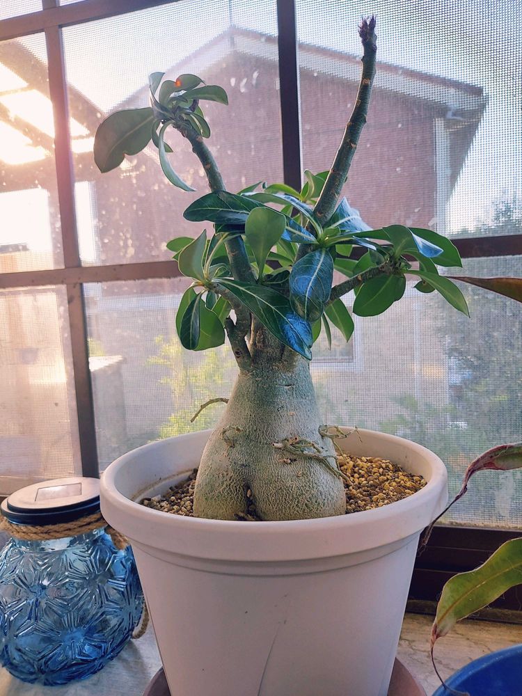 冬に丸坊主になったアデニウム葉っぱわさわさになった☺