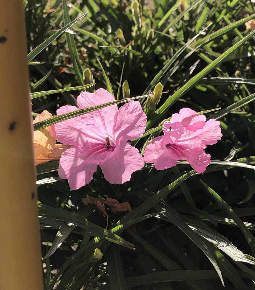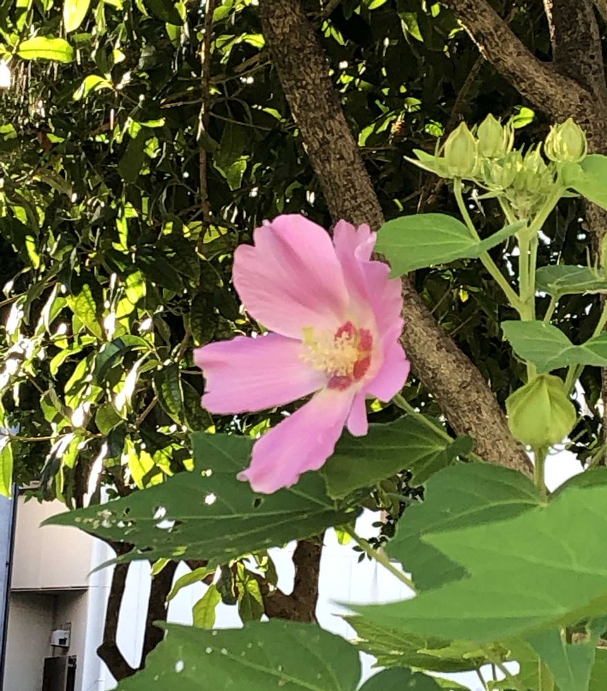 ルイラソウは多分、矮性品種‥小さい🌸 ②どこにでもあったはずの芙蓉の花が珍しい、暑すぎてか近所のは一花も咲かせない⁈