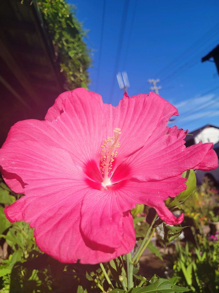タイタンビカス大きなお花がまた朝🦋の幼虫にかじられ😫