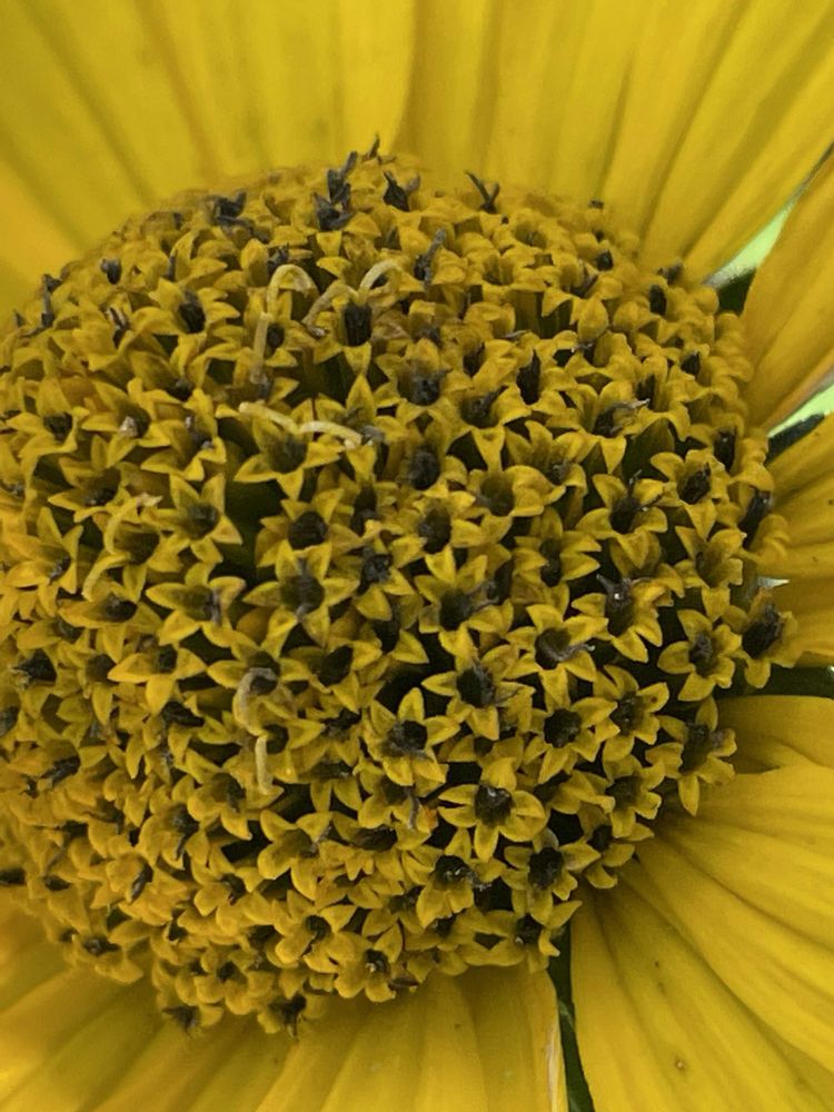 ③の画像⇨中央に多数集まる黒紫色の筒状花からなる。