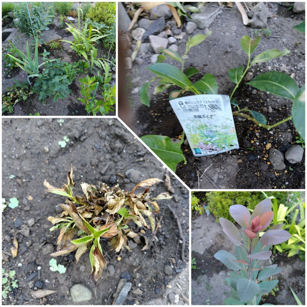 昨年から、草花よりも低木へと路線変更…ところが、今年の酷暑でアジサイは枯れ、常緑ズイナも葉焼けしてきました⤵️⤵️