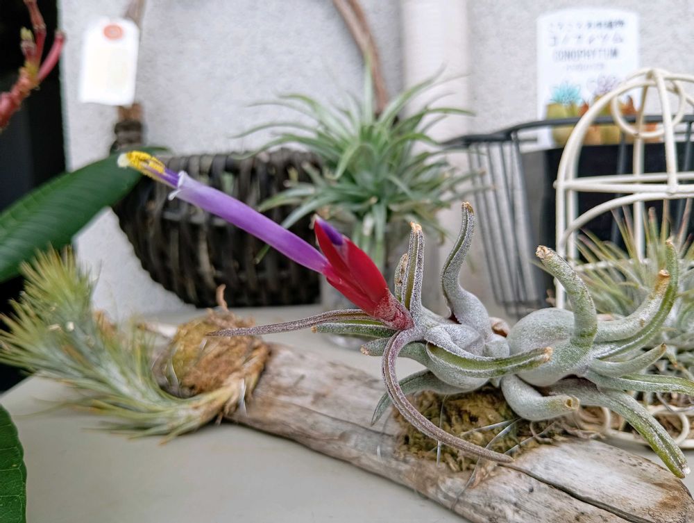 エアプランツ 夏に開花したのは初めてでした。一番花ですね。1日でしおれました😅