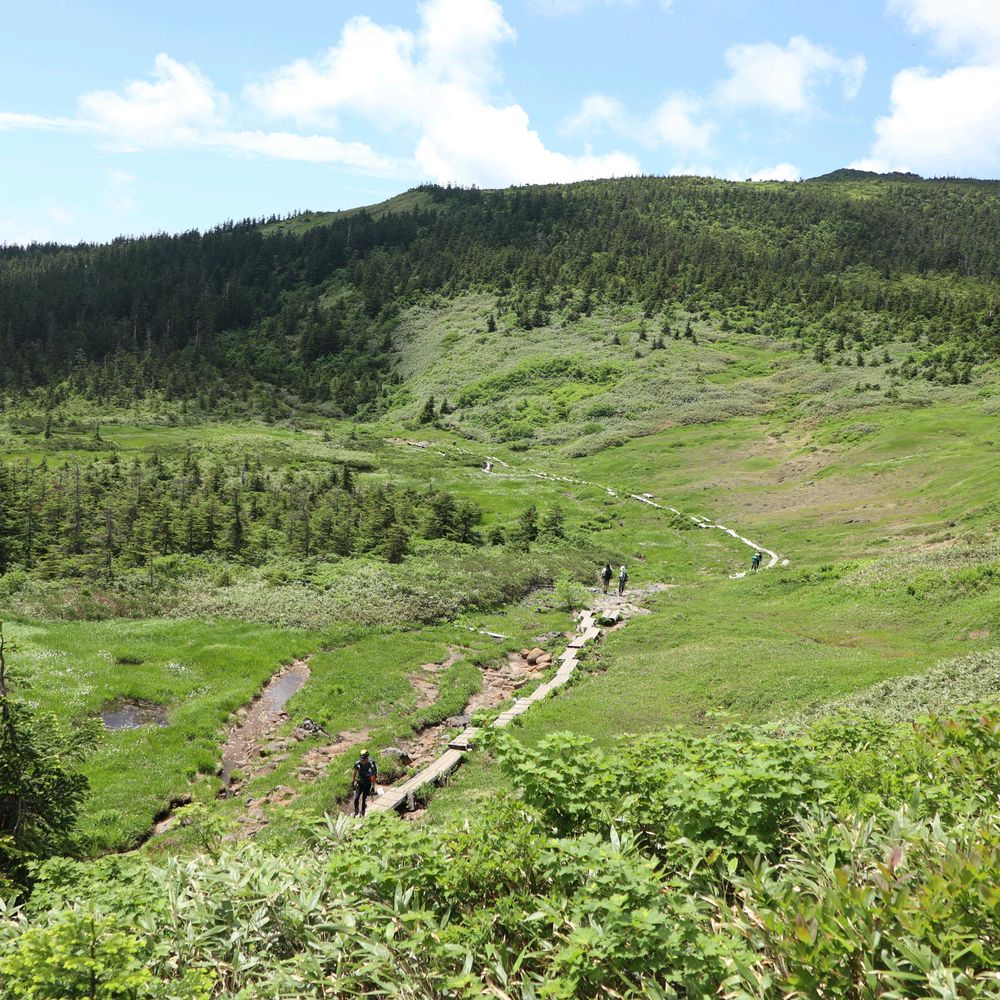 この風景、この木道、草紅葉の時に歩いたことを覚えています。夏の風景も素敵ですね〜