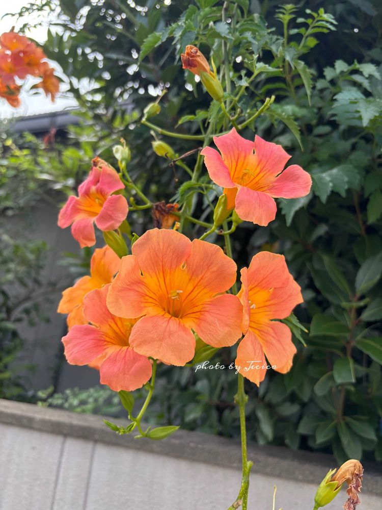 我が家からひとブロック離れた近所さんのお庭のノウゼンカズラ