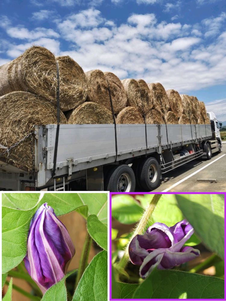牧草ロールを積んだトラックが走ってるところ、初めてみました✨