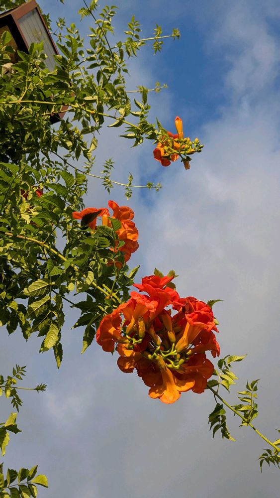 ノウゼンカズラとアメリカノウゼンカズラの交雑種も売ってるそうですよ。それは見た事無いので、複雑〜🥺