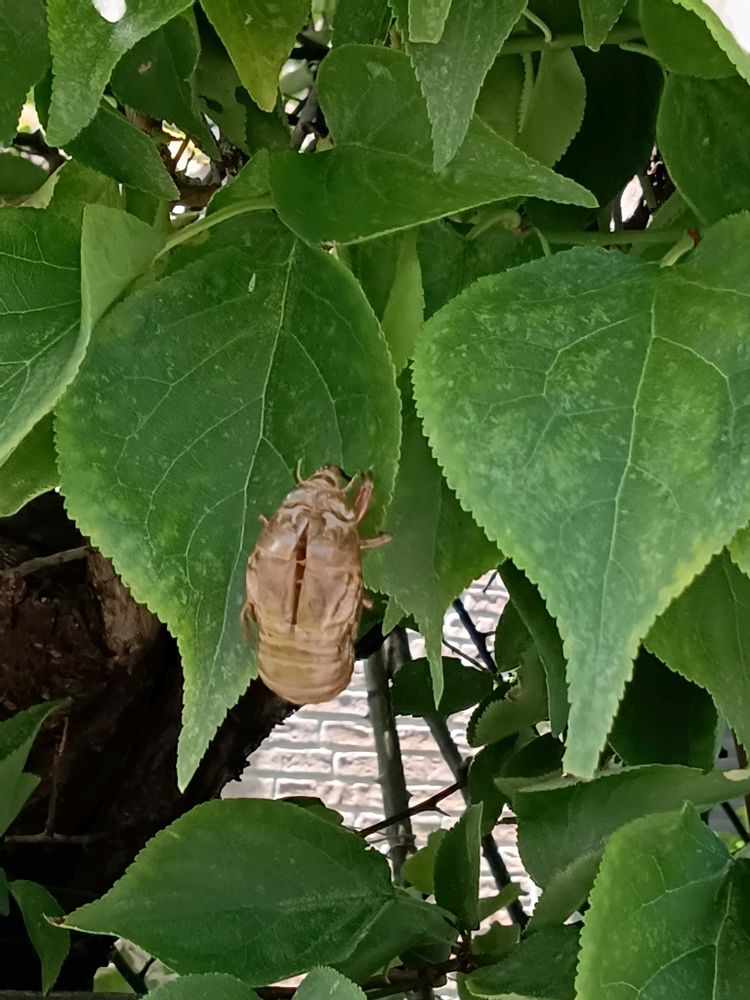 ④お庭の梅の葉に、蝉の抜け殻〜夏真っ盛りです🎇🎐🍧🏖️🌻