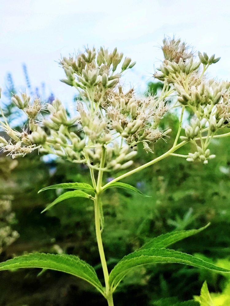 1年で枯れたと思ったユーパトリウムが咲いてきました。紅白の大型種です。赤は倒れてしまいましたが、白は2mくらいの高さでポフポフしてます。