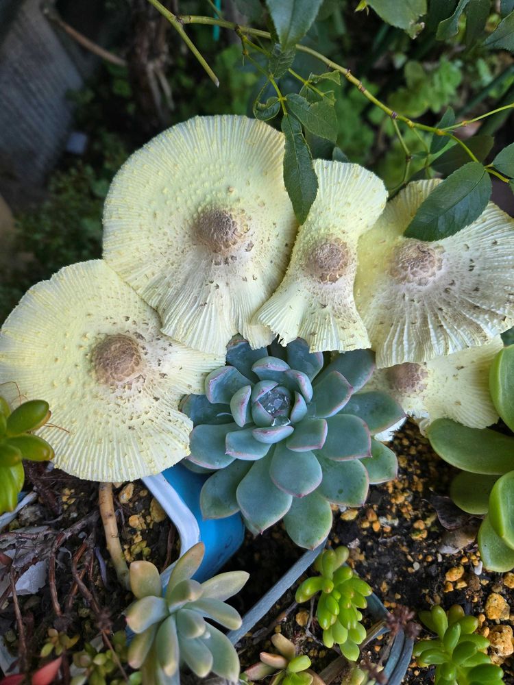 多肉寄せ植えに突然白いキノコ出現🍄🍄🍄
