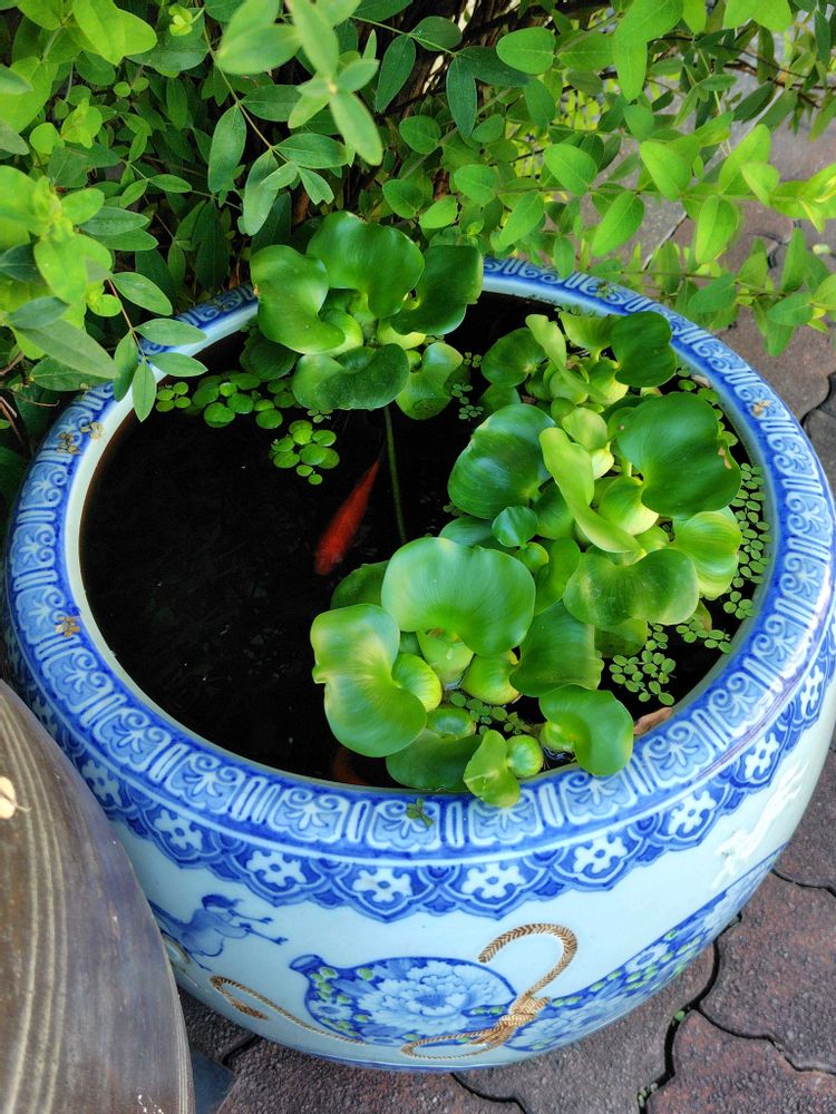①…ホテイアオイと金魚