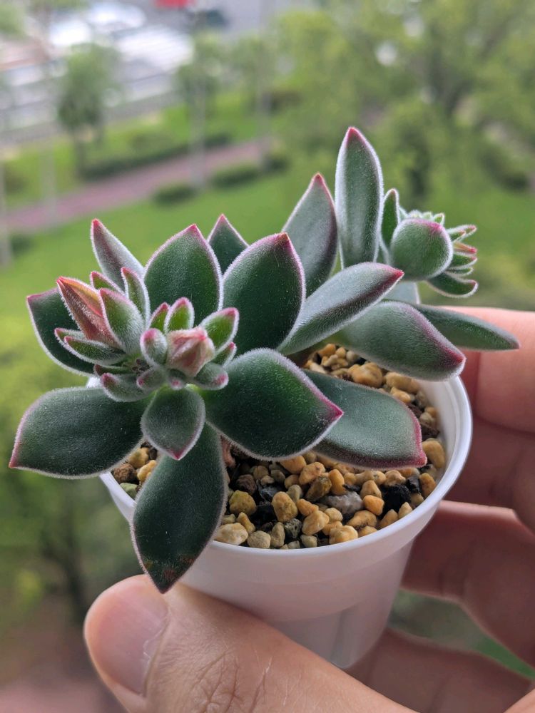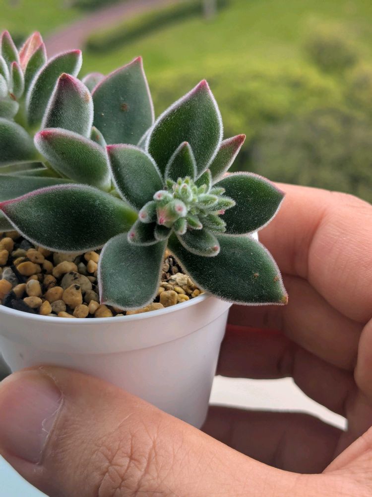 おはようさんです🤗ハムシーさんの微毛が陽に当たるとキラキラして✨️普通のエケさんとは一味違う美しさがあるよね😍割と葉がポロポロ落ちてしまうので、うちのもあまり大きくはなってないような💦調べたら大きな花が咲くそうで楽しみです😄