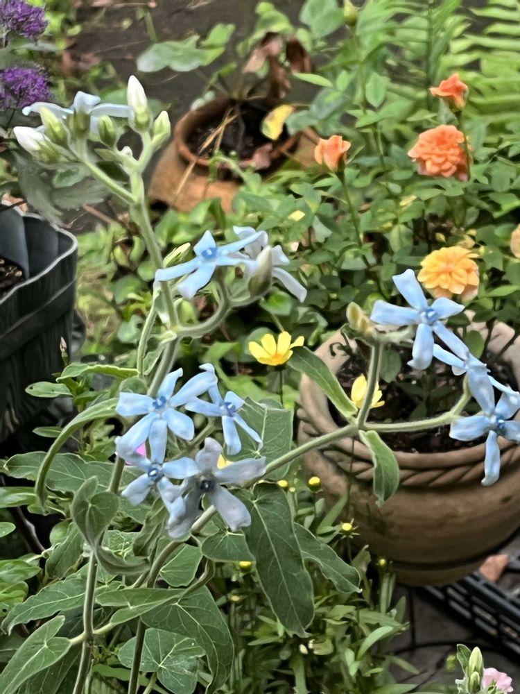 ブルースター、種が去年たくさん取れたので思いきって地植えにしました。今の所お花が綺麗に咲いています。冬がちょっと心配です。