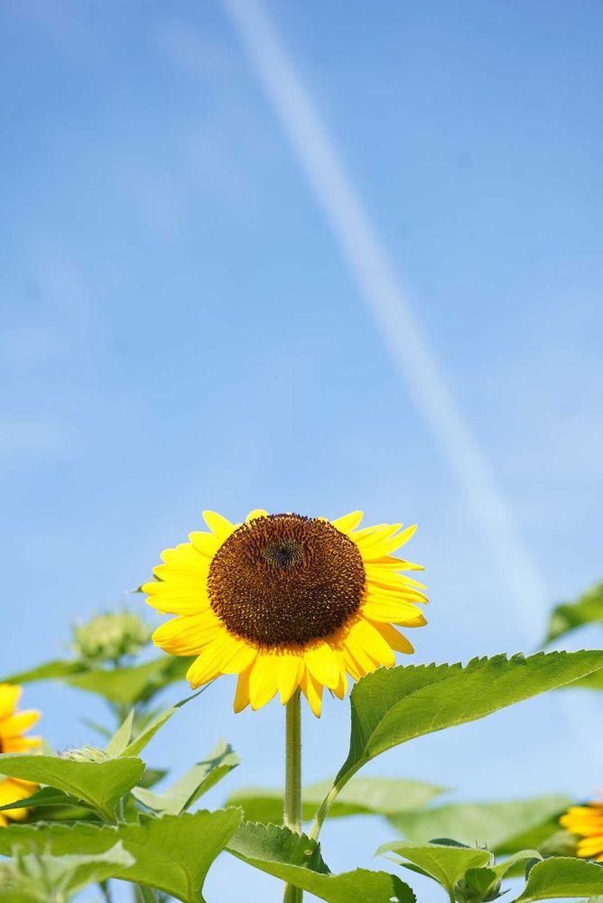 ヒマワリを撮っていたら、ちょうど飛行機雲が💭(2枚目)