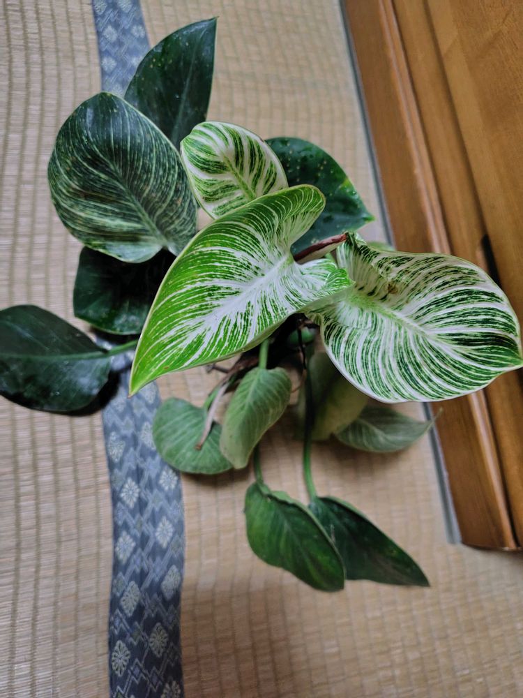 冬に真っ白葉っぱばっかり出してましたが、しましまがはいった葉っぱ🌿が復活しました🥰。