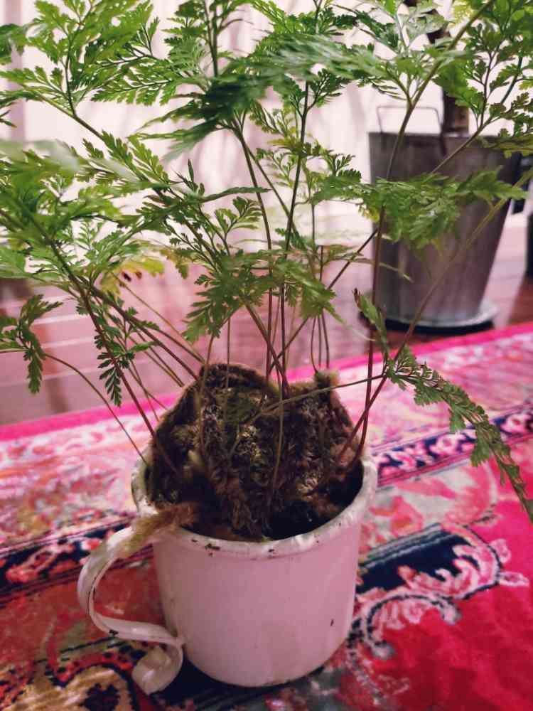 どうやらトキワシノブの親縁のようなので育成ですが、日陰で苔玉を乾燥させないように育成すれば問題ないです。水さえあれば元気な子でよ。苔玉に着生方法もコウモリランと一緒で問題ないかなぁって思います。