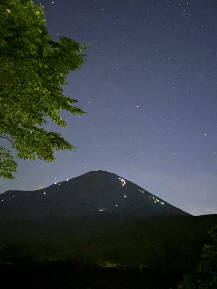 今、富士山と山小屋の灯りの写真を撮って来ました。