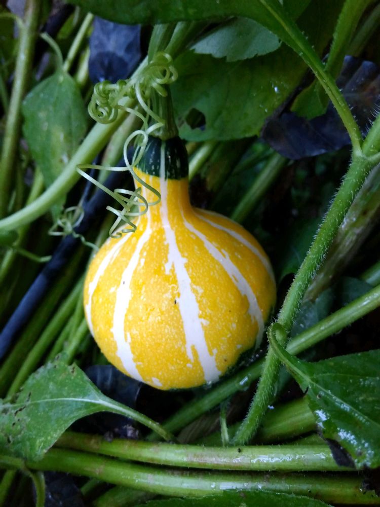 知人のおばあちゃんから苗をもらい育てた観賞用カボチャが可愛い❤実🫒に成りだして5個収穫🧺珍しいと近所の人達が喜んでくれてます🎶🥰🎶