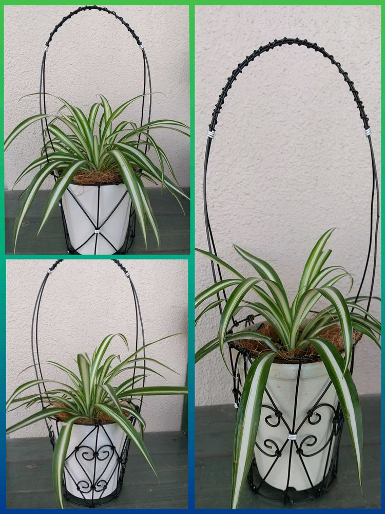 オリヅルランがワイヤークラフトの鉢カバーに入ったら見事に涼しげに🍃