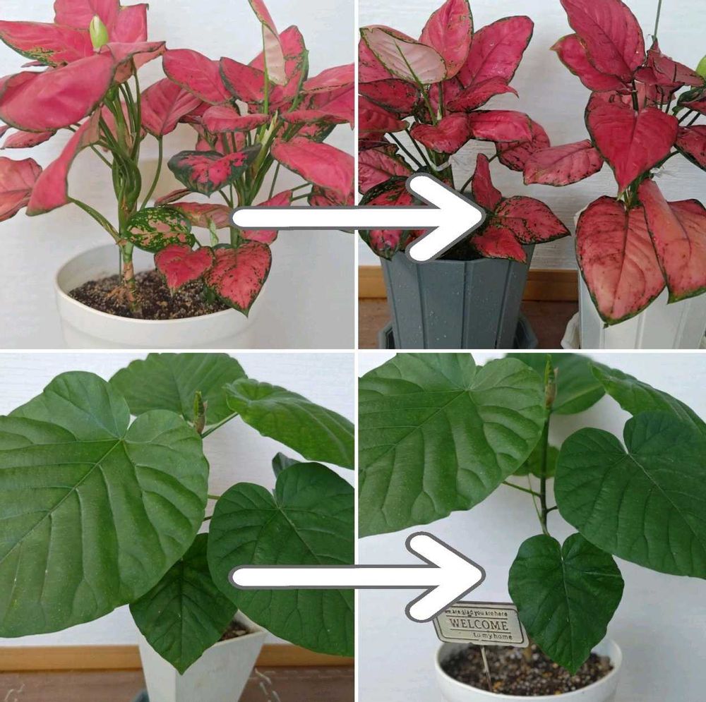 アグラオネマの葉の色、緑の斑模様が少なくなった😅何が悪い⁉️リビング窓辺で日照🌞は問題なし。きっと根詰まり。これで解消されますように。