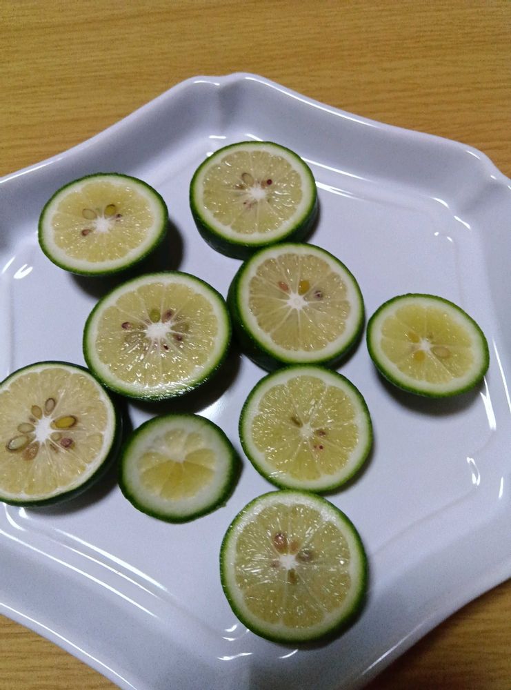 皮が青いレモン🍋ライム🍋🟩に似てますね 冷やし中華頂きます😋