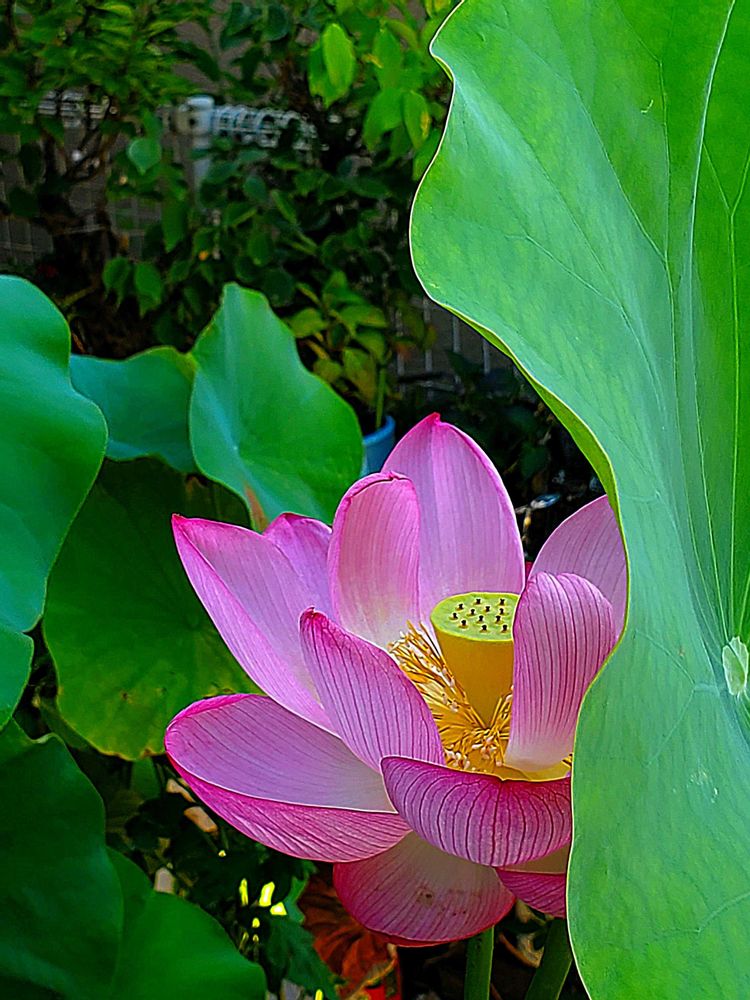 ハスのお花、近所のお宅の門(高さ1mちょっと)の横に咲いているので、写すの楽なんですよ😁