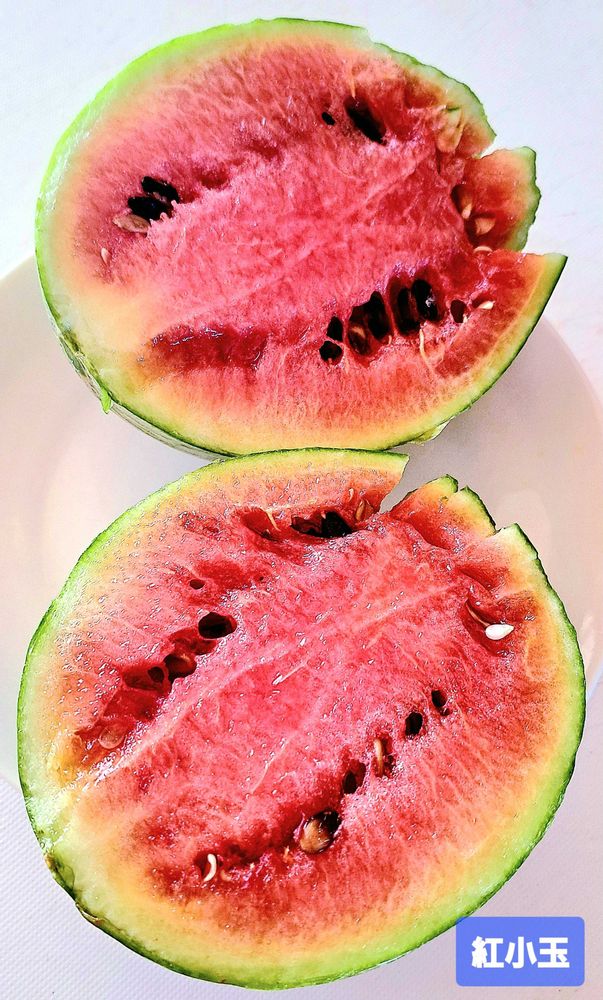紅小玉🍉週末にと思っていたら引っ張りすぎたかな、ちょっと小さめですが1つ収穫、甘くておいしかったです😋💕