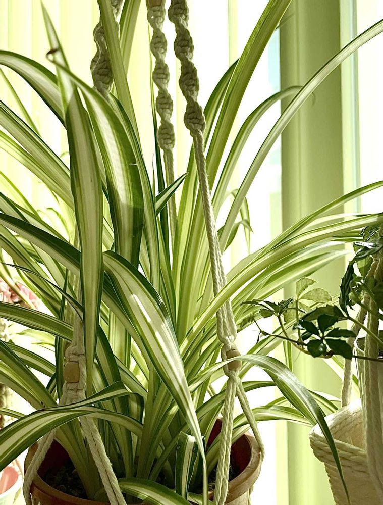 オリヅルラン こないだまで吊ってましたが大きくなってきたので植え替えて今は下に降りてきてます🤭