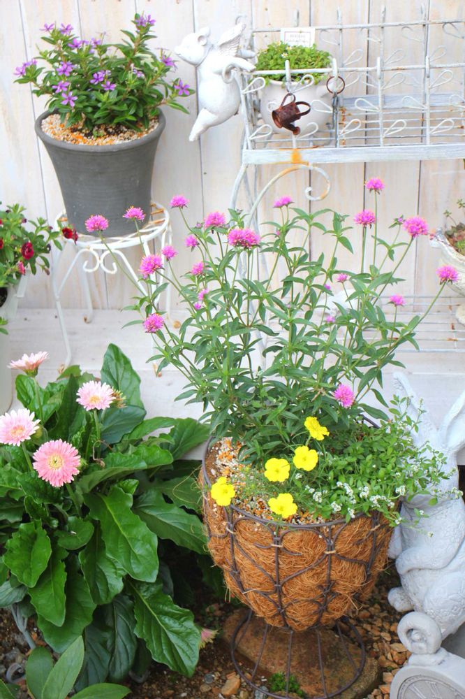 pwさんのゴンフレナラブラブラブの寄せ植え、2枚目は、サントリーフラワーズさんのフェアリースター☺️