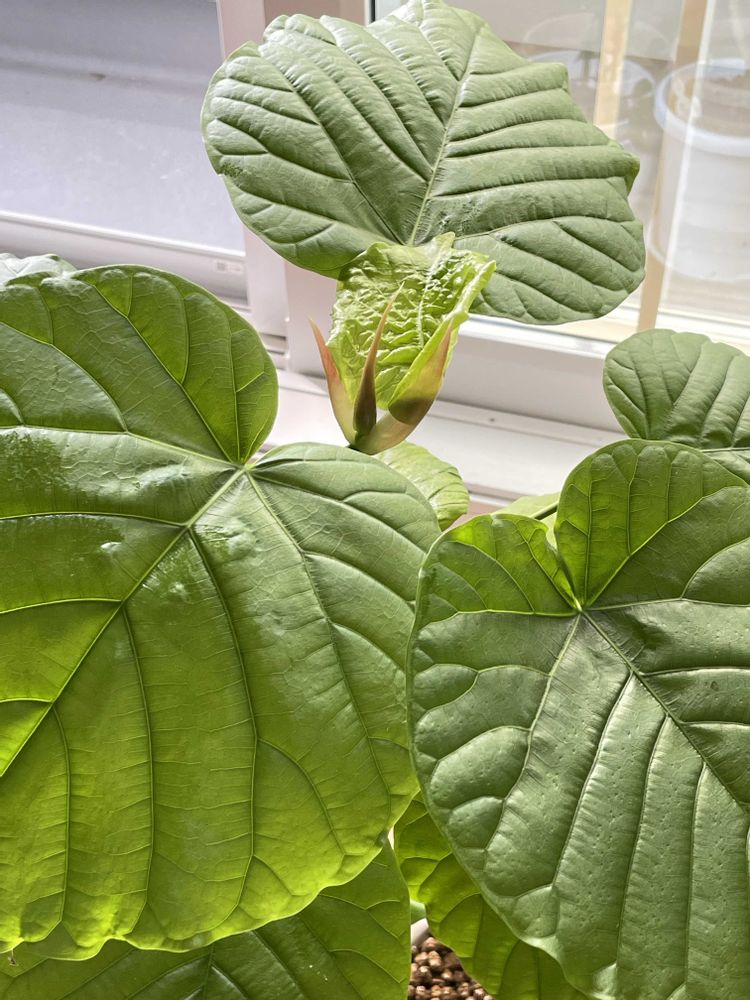 ウンベラータの新芽の薄いピンクが綺麗〜癒されます♪ ♬ ヾ(´︶`♡)