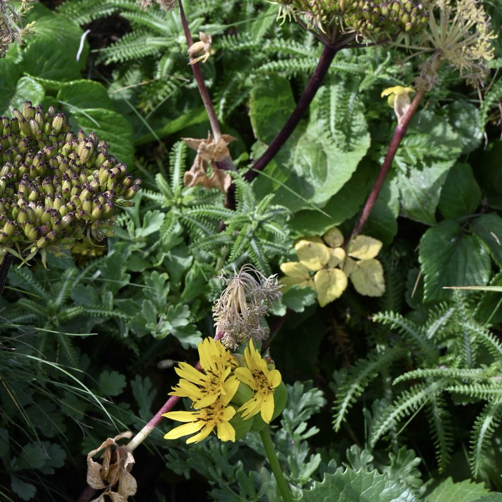 トウゲブキも、海岸近くの草原に咲き始めていました🌼🎶