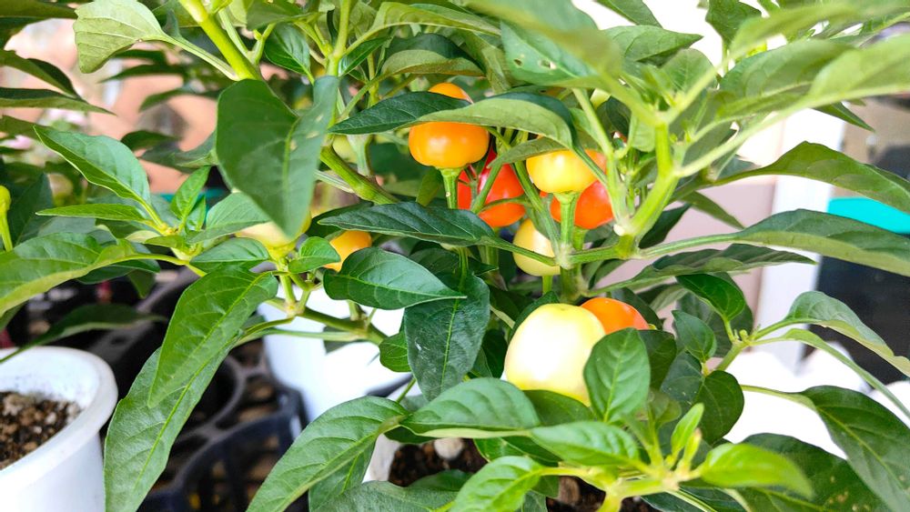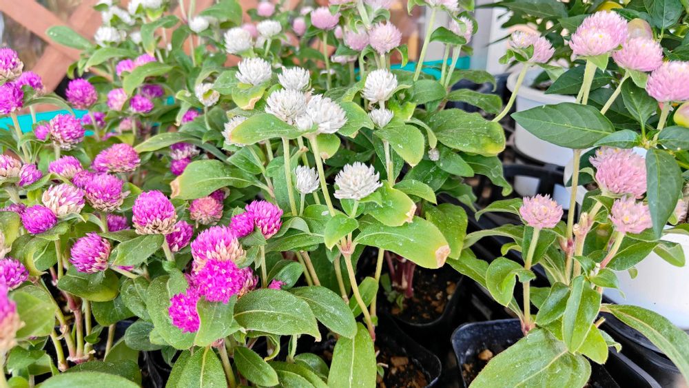 スーパーに千日紅と七色唐辛子の