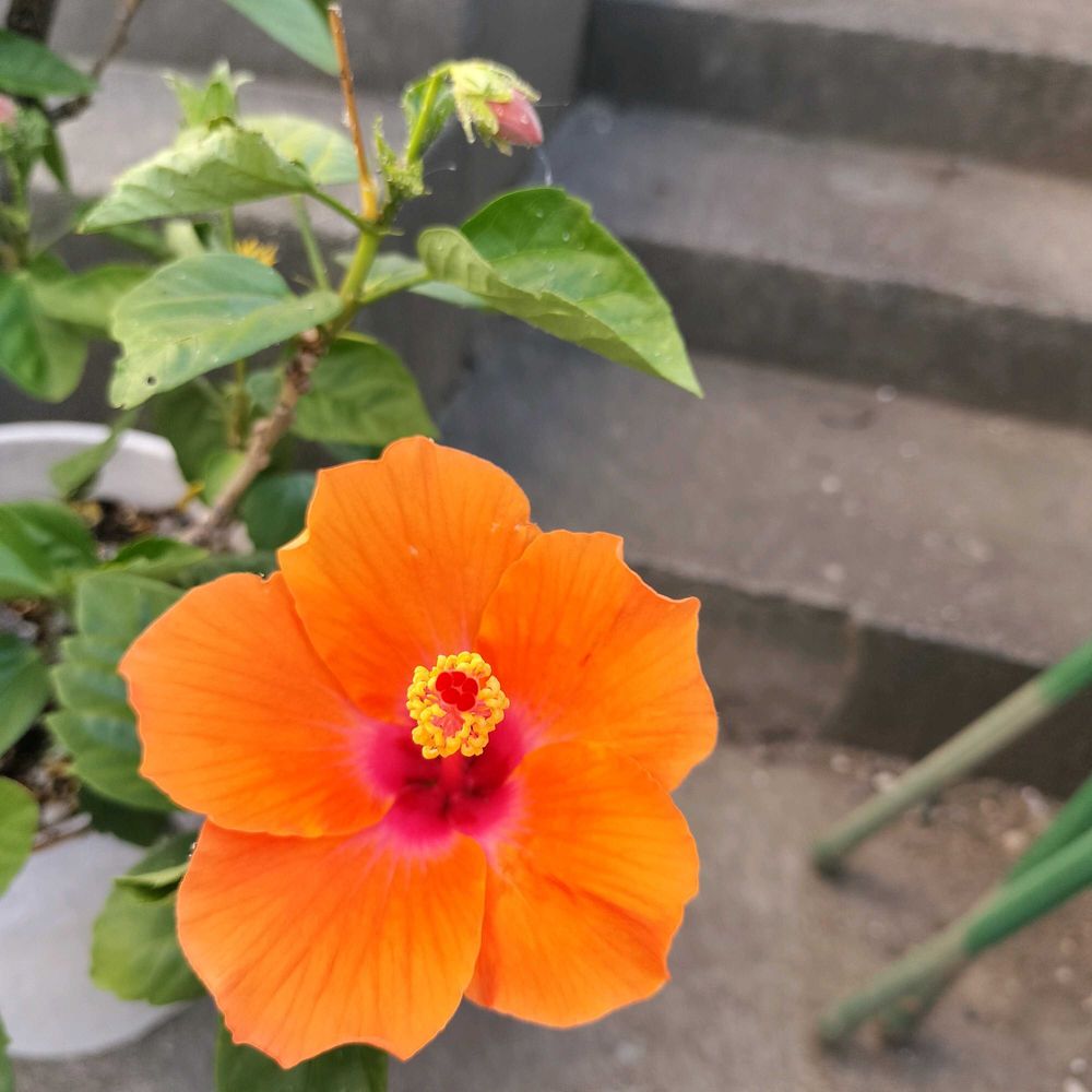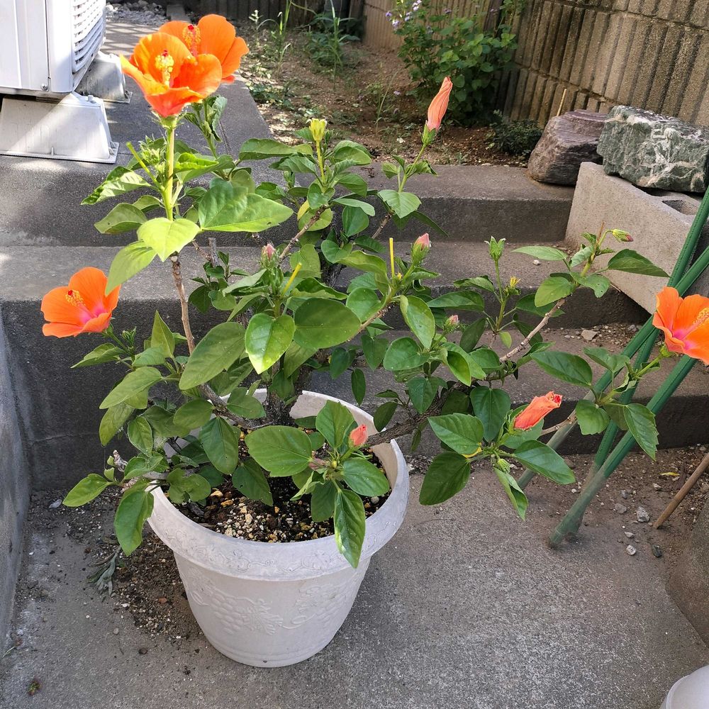 オレンジの🌺は今朝4輪咲いていてびっくりしました🫢