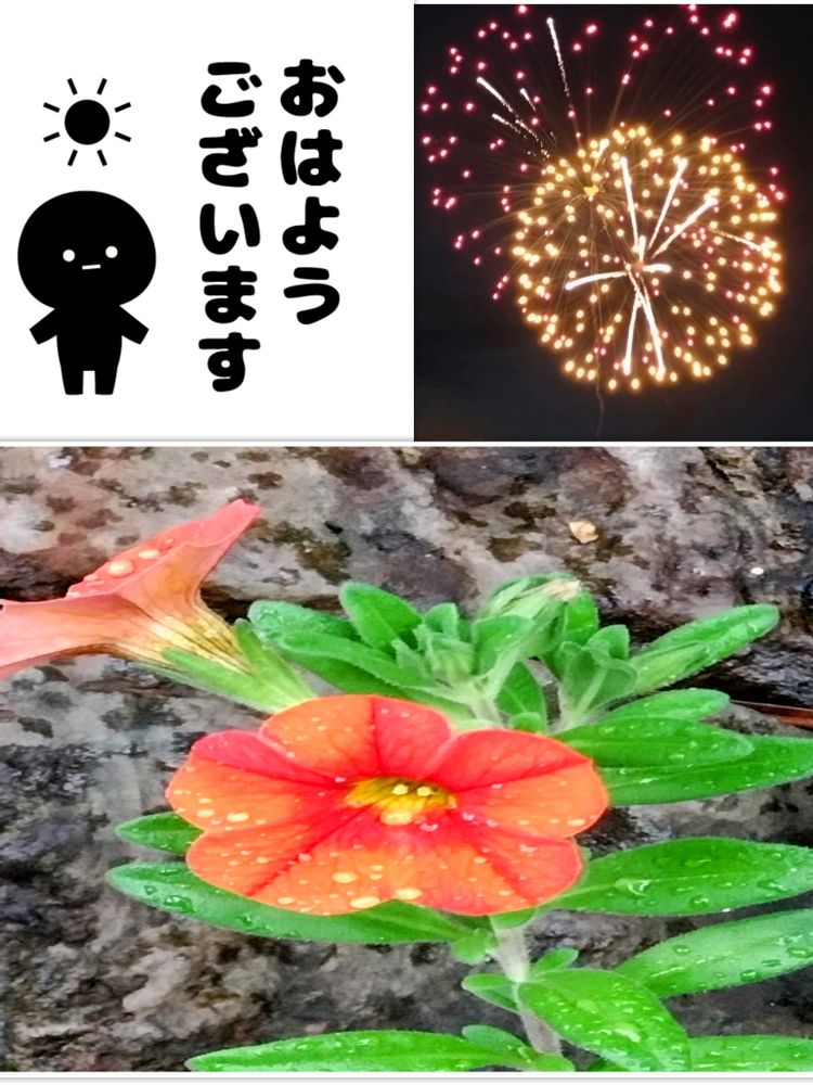 オレンジ色のカリブラさんも元気で咲いていますよ(⌒▽⌒)