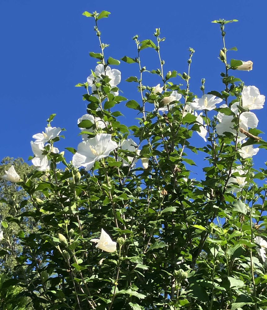 青空に映えるムクゲ✨白い花が綺麗ですね〜ありがとう〜🤓👌