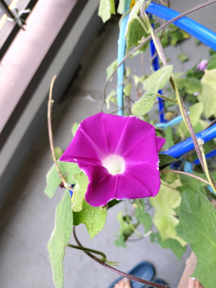 その種から、5年経った今でもこぼれ種朝顔が咲きます🌼