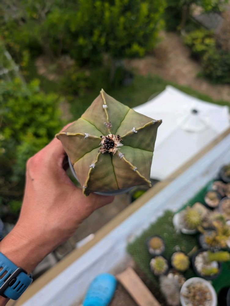 ⚫サボテン、アロエ、塊根など。 ⚫たまに「いいね」押してます。 --------------------------------------------------------- 【19.08】19年8月頃から徐々に多肉植物・サボテンの魅力に取り憑かれてしまいました。 【19.10.22】グリーンスナップを始めました。 【21年~22年】冬越しをほぼ室内避難しないチャレンジ。 【我が家の多肉植物・サボテン・観葉植物】220506時点 662/878 【セダム】3/6 ×春萌(19/11/3) ×プロリフェラ(20/2/1) ×薄化粧(20/2/5) ・※虹の玉(20/2/6) ・※虹の玉?乙女心?(20/2/6) 6・※黄麗(月の王子)(20/3/5) 【チレコドン】2/5 ×ブッコルジアヌス(19/11/3) ×スカエフェリアヌス 群卵(20/3/4) ×万物想(レティキュラーツス)(20/9/4) ・万物想(レティキュラーツス)②(20/10/2) 5・ワリチー(20/10/8) 【クラッスラ】10/17 ・天狗の舞(19/11/3) ・紅稚児(19/11/3) ×姫花月(19/11/3) ・テトラゴナ(19/11/12) ・火祭り光(19/12/4) ×花月錦白斑(19/12/4) ×※花月(金のなる木)(19/12/12) ・神刀錦(20/1/8) ×キムナッキー(20/1/10) ×10・※メセンブリアンセモイデス(ラージフォーム)(20/1/23) ×※花月?黄金花月?⇒火祭り錦?(20/1/23) ・巴(20/2/27) ・※火祭り(20/3/5) ・ゴーラム(20/12/16) ・神刀(20/12/24) ×アイボリーパゴタ(20/12/24) 17・spトランスバール ドラケンスバーグ(20/12/24) 【カランコエ】1/19 ・錦蝶(19/10/19) ×不死鳥錦(19/10/24) ×カーニバル(19/12/4) ×※月兎耳?(19/12/26) ×唐印(19/12/28) ×テディベア(20/1/10) ×ファング(20/1/11) ×ミロッティー(20/1/23) ×※黒兎耳?月兎耳?(20/2/6) ×10・※胡蝶の舞(20/2/6) ×星兎耳(20/2/12) ×ゴールデンバニー(20/2/12) ×福兎耳(20/2/12) ×姫黒兎耳(20/2/19) ×※シナモン?孫悟空?(20/2/19) ×キューエンス(20/2/19) ×※月兎耳(20/2/20) ×黒兎(20/2/20) 19×シナモン(20/2/21) 【センペルビウム】13/17 ×巻絹(19/9/6) ・パシフィックナイト(19/9/14) ・※百恵(19/12/12) ×※高嶺の華(19/12/12) ・※綾桜(19/12/12) ・※ファイヤーバード?パルグラム?(19/12/12) ・※レッドチーフ?ウラヌス?(19/12/12) ・※シャンハイローズ?(20/2/4) ・※神風?(20/2/4) ×10・※綾桜?(20/2/4) ・※麗人盃?(20/2/4) ・※雪牡丹?(20/2/4) ×※紅牡丹?(20/2/4) ・※ラウンドシーン?(20/2/4) ・※巻絹?(20/2/6) ・レッドベル(20/2/19) 17・※ご近所さん(20/5/17) 【ガステリア】39/43 ・春鶯囀バテシアーナ(19/11/20) ・グロメラータ(19/11/20) ・臥牛(19/11/20) ・リリプターナ(子亀姫)(19/11/20) ・白星竜(ベルコサ)(19/11/20) ・錦沙戸宝(19/11/20) ・ニティダ(19/11/22) ・フロッキー(19/11/22) ・姫子宝錦(19/11/24) 10・虎鉾(19/11/24) ・富士子宝錦(19/11/26) ・照姫(19/11/27) ・恐竜×大桑臥牛(19/11/29) ・颯々の松(19/11/29) ・ドラゴンスキン(19/12/2) ・名前不明⇒グリーンワイパー(19/12/4) ・黒鶯囀(19/12/4) ×臥牛錦 糊斑(19/12/4) ・白臥峰ダルマタイプ(19/12/4) 20・バイリシアナ×グロメラータ(19/12/10) ・ピランシー錦※斑多め(19/12/24) ・ピランシー錦※斑少なめ(19/12/24) ・臥牛竜(19/12/24) ・グラキリス(虎の巻)(19/12/25) ・ホワイトパール(20/1/7) ・白銀水牛(20/1/7) ・エクセルサ(20/1/8) ・ダルメシアン(20/1/10) ・タワー(20/1/23) 30・クロチェリー(20/1/23) ×ニグリカンス f.dark monstrosa(20/2/27) ・金剛殿(20/2/27) ×ラウリンソニー(20/3/13) ・幅広ピランシー(20/4/7) ・恐竜×白点臥牛(20/4/7) ・恐竜(20/11/9) ・ラウリンソニー②(20/11/19) ・恐竜②(21/1/12) ・恐竜×春鶯轉(21/1/13) 40・ホワイトパール②(21/1/13) ×ラウリンソニー③(21/2/10) ・エレフィアエ(21/4/13) 43・臥牛②(21/6/14) 【ディッキア】49/52 ・ハイブリッド(19/11/6) ・(アリソナ×マルニエルラポストレイ)×ボーン(20/2/21) ・アリゾナ(20/3/13) ・ニッケルシルバー(20/3/13) ・縞剣山錦(20/3/18) ・(ケリー×マセドイ)×ヘブディング ビッグブルーF1(20/3/24) ・ターザン(20/7/15) ・ゴエリンギー(20/7/15) ・エステベシー(20/7/16) ・グランマルニエル スノウ(20/8/21) ・ダウソニー(20/9/9) ・コリスタミネア パープルフォーム(20/9/16) ・マイケルアンドレス(ブリットルスターF3)(20/9/16) ・ゴエリンギー レッドクローン×ターザン(20/9/18) ・ターザナ(20/9/18) ・レッドボーン×スカイウォーカー(20/10/27) ・グランマルニエル(20/11/4) ・トゥーシ―F2(シルバークローン)(20/11/4) ・グレイオプス(20/11/5) 20・タイニーレッド×ヘブンアンドヘル(20/11/5) ・マルニエルラポストレイ エステベシー シーディング ブラジル(20/11/5) ・(レッドシャーク×ディストーション)×ジョーズ(20/11/5) ・ブラックアイス(20/11/6) ×ダウソニー×ガーネットクロウ(20/11/12) ・デリカータ(20/11/18) ・エステベシー×ゴエリンギ―(20/11/30) ・ゴエリンギーOPS セレクト ホワイト(20/11/30) ・(ソウフィッシュ×7a)×ターザン(20/11/30) ・ベアテアエ レッドクローン(20/12/07) 30・アリゾナ×HU-5(20/12/08) ・エステベシー②(20/12/08) ・ダコタ(20/12/09) ・マルニエルラポストレイ(20/12/10) ・エステベシー×ブリットルスターF2(21/1/8) ・マウンテンオブニードルズ(21/1/14) ・エステベシー③(21/1/27) ・パラファット(21/2/10) ・ジョーズ×ドナマリエ(21/3/15) ×フォステリア×エステベシー(21/3/15) ×40・フォステリア×エステベシー②(21/3/15) ・カタナ(21/3/24) ・スノーストーム×ブライヤーパッチ(21/3/24) ・ワサビ(21/4/7) ・ブラックアイス②(21/4/12) ・ブラ