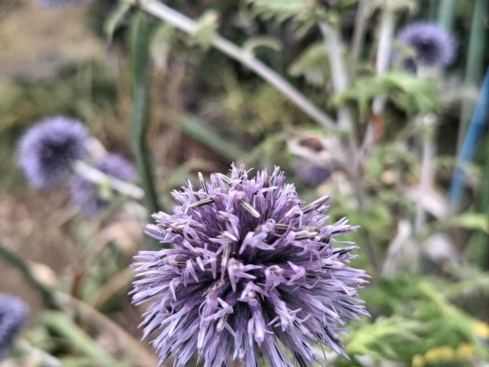 ノウゼンカズラが盛りに咲いています。種蒔きからのエキノプスが色づき理想のお花に育っています。