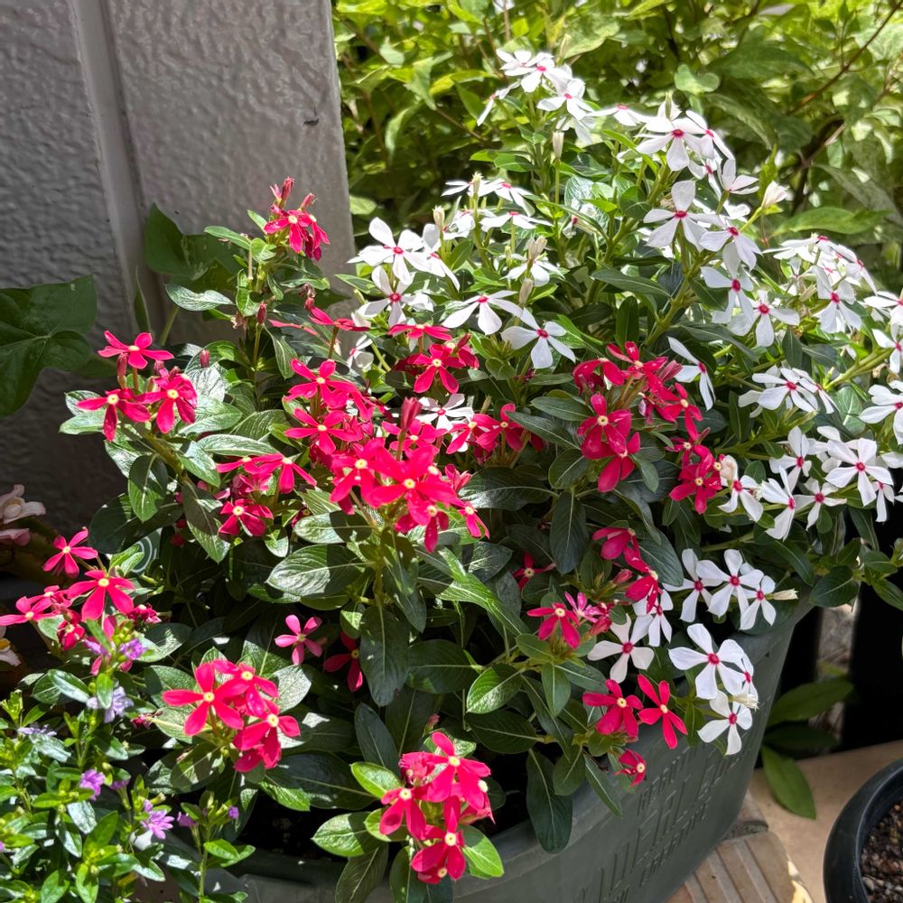 ニチニチソウ、こぼれ種っ子がいっぱい出てくるので抜くのもかわいそうで新たに買えません😅
