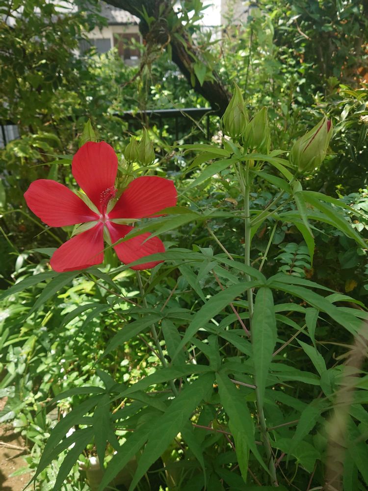 暑くて雑草も伸び伸びしちゃって、ジャングルになりそうな庭に夏の花が咲きました🌺